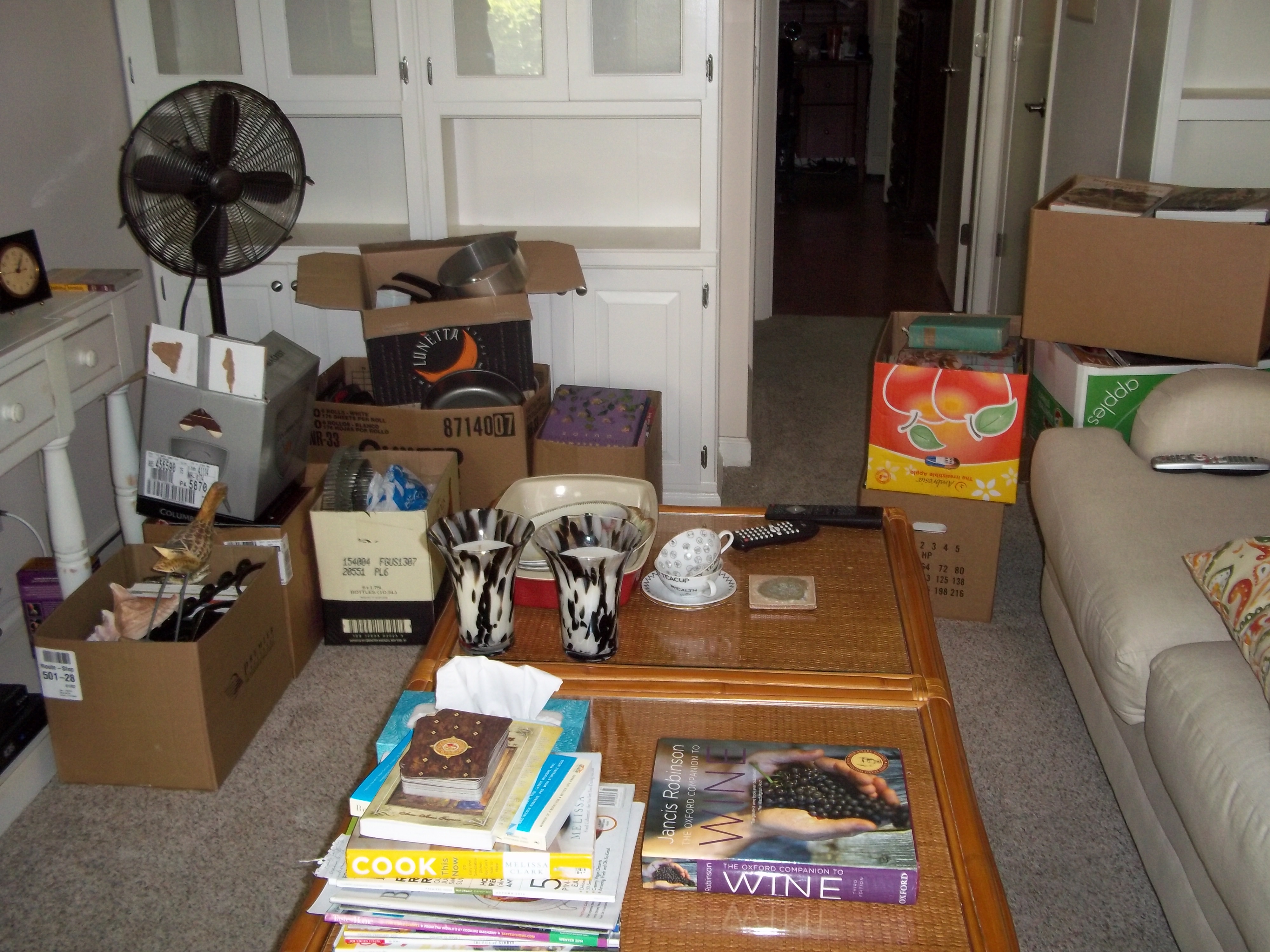A friend of mine recently moved and posted Facebook pictures right after he emptied the last box from the moving truck (Hi, L). I chided him because in the chaos of his now disorganized living room, with unopened boxes everywhere and furniture haphazardly placed in all corners of the room, I noticed that the one thing that he did manage to unpack were his wine glasses. Brilliant! He certainly had his priorities in order, and I now have a new role model.