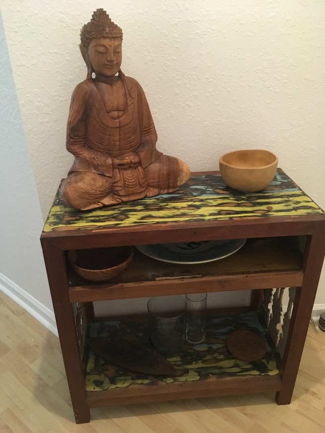 It is always better to sit on that couch and know it’s paid for especially in case you spill one of those $4 coffees on it. 🙂 I had a buddha once in a garden years ago. He went with the house when we sold it. 🙂